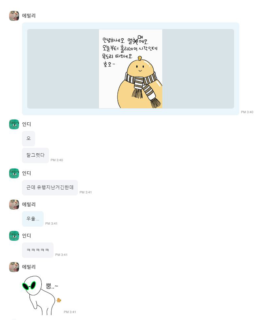 ํ ์ ๋ฌผ์ ํ๋๋ผ๋ ๊ธฐ๋ถ ์ข์์ง ๋ชจ์ต์ผ๋ก์.๐